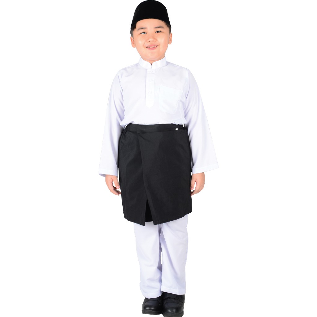 Baju Melayu Putih Teluk Belanga Sekolah Samping Hitam Kain Licin Shopee Malaysia